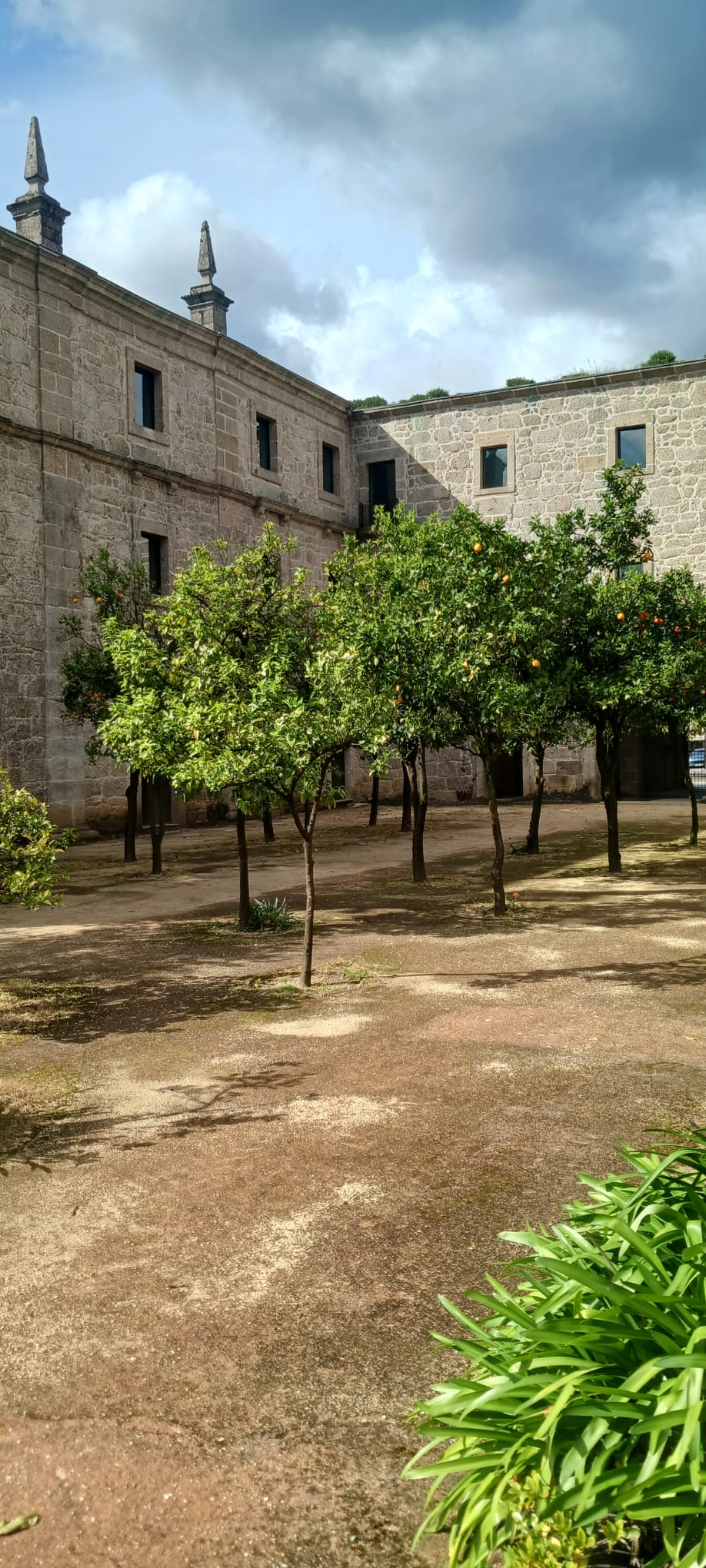 Mas voltemos ao início, à porta de entrada na história e ao incipit deste texto. Com as laranjeiras, presentes no pátio que convida os sentidos a captarem o aroma e o laranja circular dos frutos suspensos. Há que deixar à porta o ruído, a agenda, a urgência das conversas e dos compromissos. A natureza circundante em forma de árvores, flores, ramadas, trepadeiras vai ser o cenário para o desejo de introspeção, fruição do momento que ali parece perene. Este silêncio no jardim pode ser interrompido pelo coaxar das rãs que habitam num lago, outrora outra coisa, contíguo ao antigo refeitório. É só estar atento e com tempo para que aconteça.