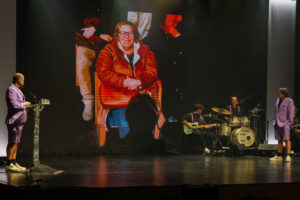 Ao longo das duas sessões, o trio chamou vários espetadores ao palco, em momentos distintos, para entrevistas informais que serviram de ponto de partida à criação dos improvisos.