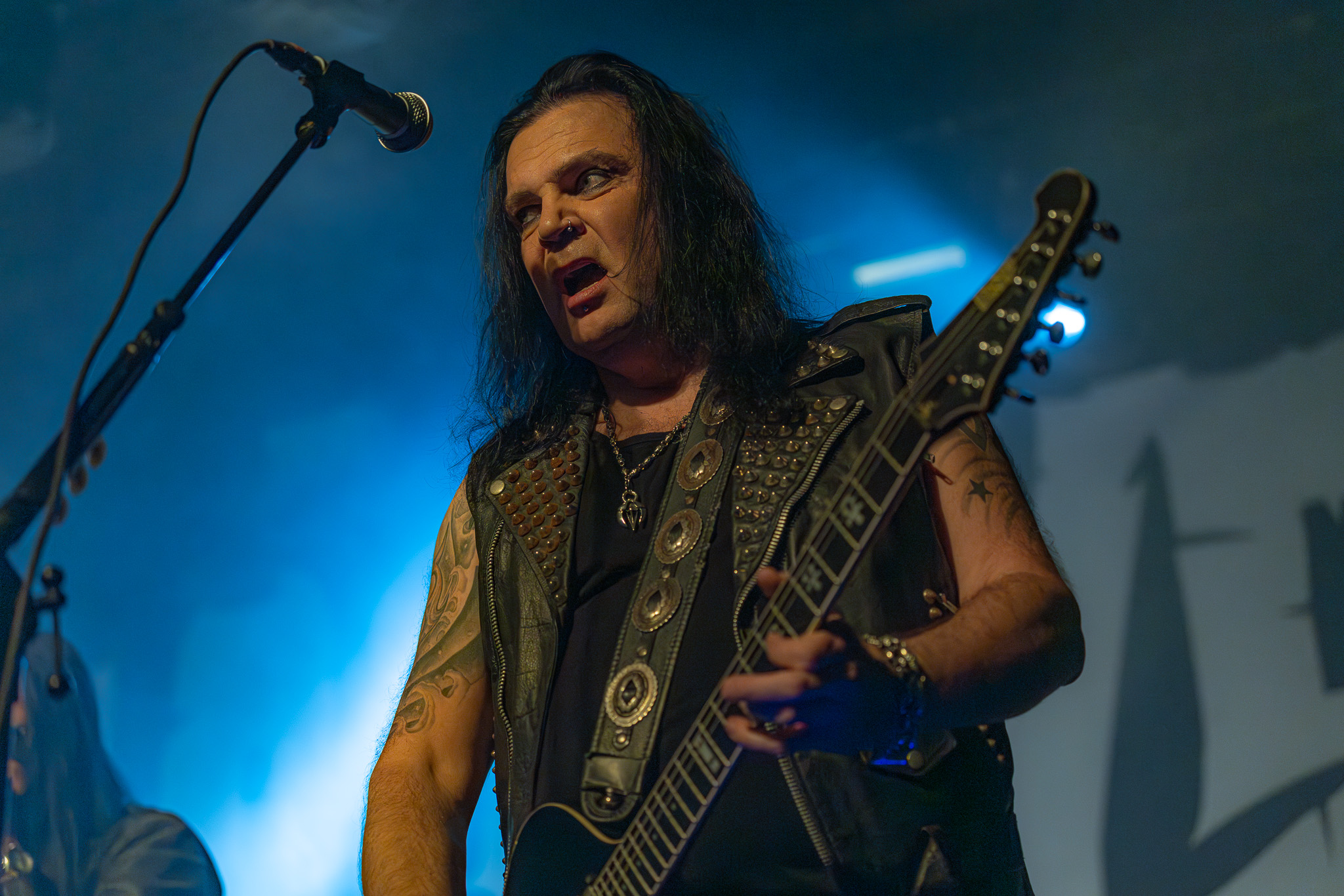 A noite arrancou com os “Vampiros de Helsínquia”. Os The 69 Eyes, liderados pelo carismático Jyrki 69, trouxeram ao Porto o seu estilo gótico fundido com o rock n’ roll clássico. Promovendo o seu mais recente trabalho, Death Of Darkness, a banda não esqueceu os hinos que os tornaram ícones. Temas como “Lost Boys” e “Brandon Lee” ecoaram com a densidade habitual, preparando o terreno para o que viria a seguir.