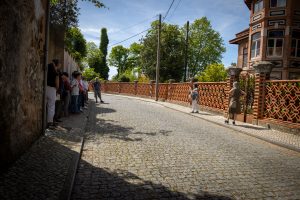 O grupo vai avançando, mirando o casario e tirando fotos, ouvindo as explicações e histórias, com paragens estratégicas, como a que acontece junto à casa de quem fez a denúncia, à Câmara Municipal e, posteriormente, ao Governador Civil de Aveiro, “de um casal que gerava muita desconfiança”.