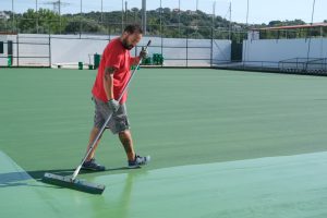 O novo pavimento desportivo, de cor verde, foi aplicado com o sistema técnico homologado “Skyros Multidesporto BT”, composto por camadas especializadas — primário epóxi, camada autonivelante e acabamento acrílico antiderrapante — que garantem resistência, uniformidade e segurança acrescida. A intervenção permite agora a prática de modalidades como andebol e futsal, tanto em contexto recreativo como competitivo.