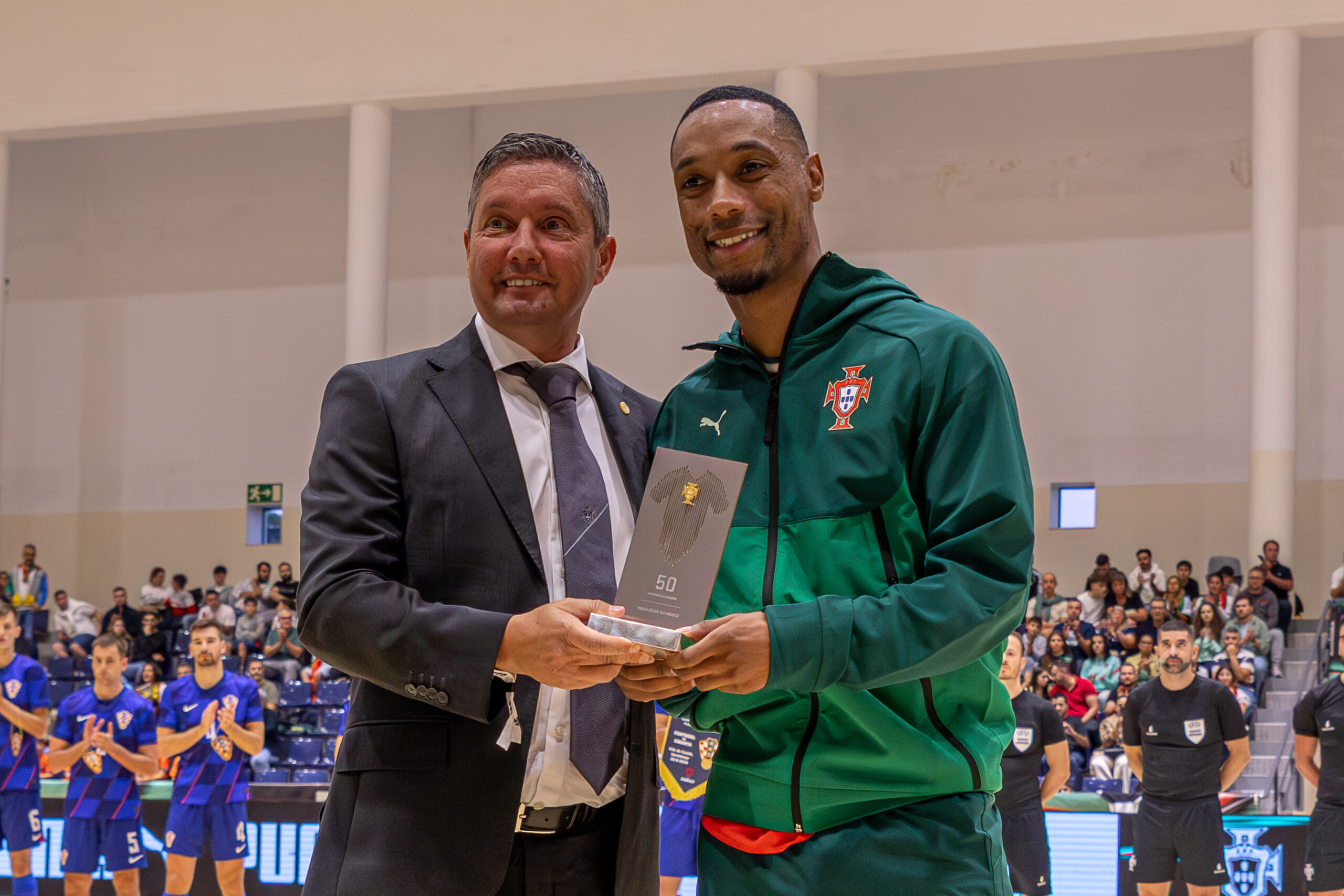 Antes do início da partida, o ala Pauleta recebeu uma placa comemorativa das mãos de José Gomes, Vice-Presidente da FPF, por ter atingido as 50 internacionalizações pela Seleção A de Futsal no encontro frente à Macedónia do Norte, disputado a 31 de janeiro de 2025, a contar para a Ronda Principal de qualificação para o Euro’2026.