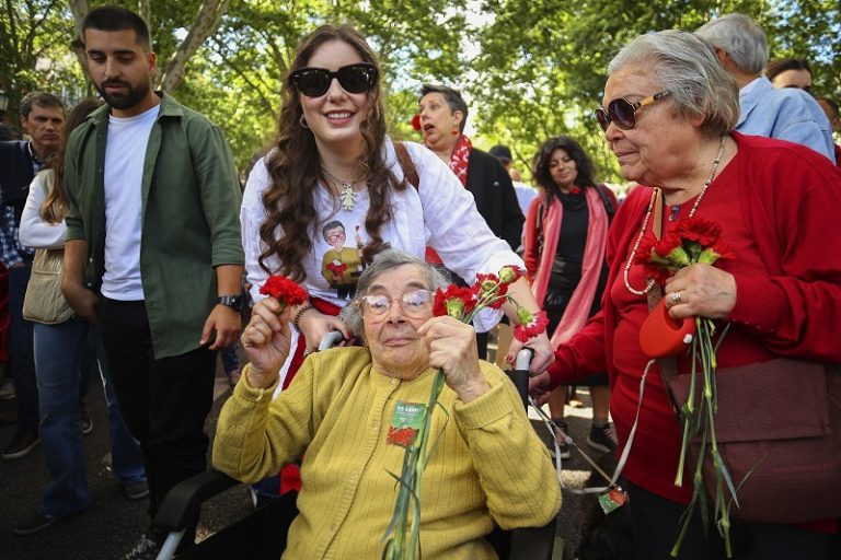 Celeste pegou no seu ramo de cravos – “vermelhos e brancos” – e rumou ao Rossio para ver “o que há tanto tempo esperava que acontecesse“.