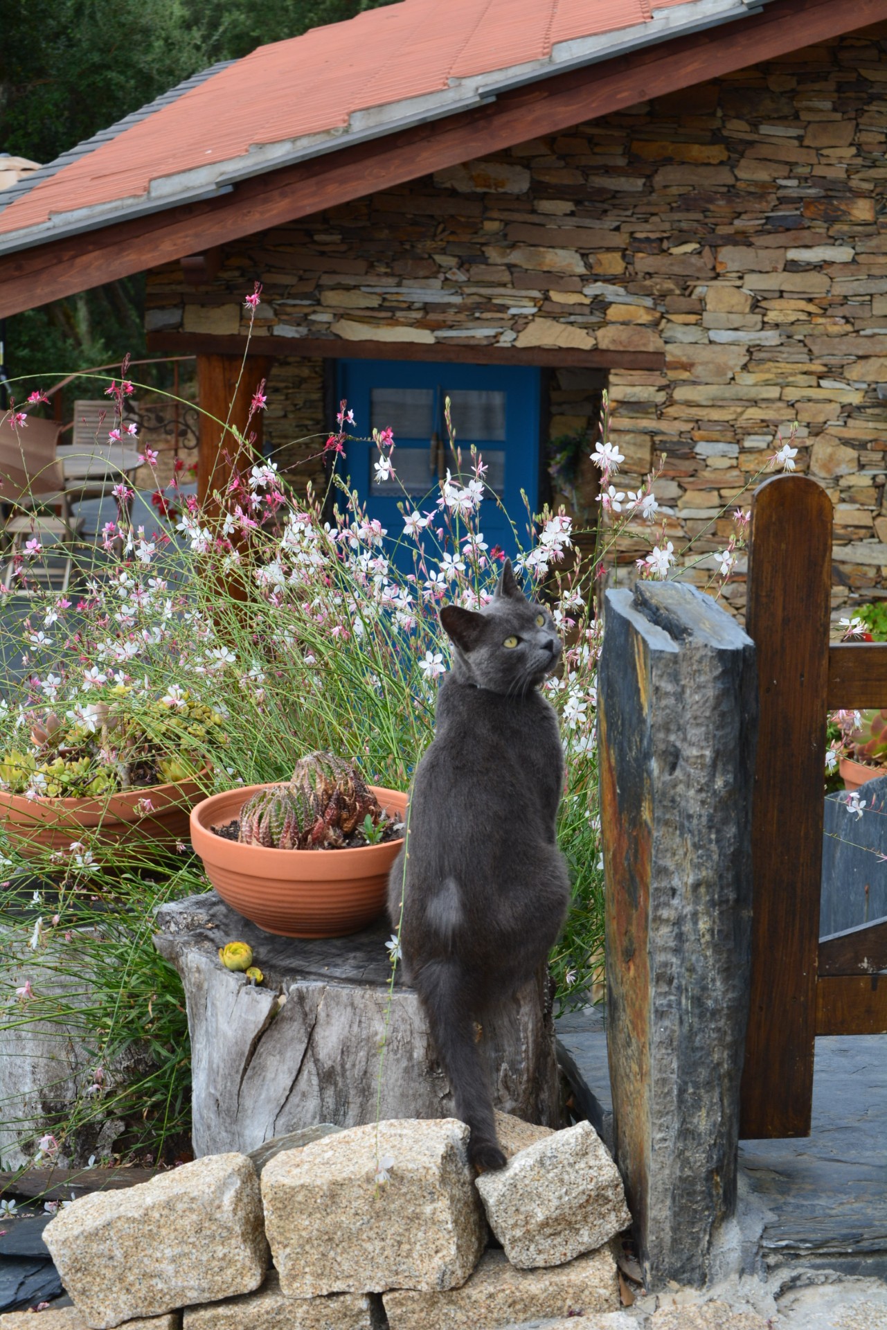 E motivos para esse encantamento, essa espécie de feitiço, existem de sobra, ali – as duas casinhas em pedra da região, cujos caminhos empedrados são ladeados de canteiros coloridos, a piscina de água translúcida e salgada com uma vista rio a cada braçada que se dá, as cores das borboletas que esvoaçam sobre as pétalas e os arbustos baixos que emolduram o espaço.