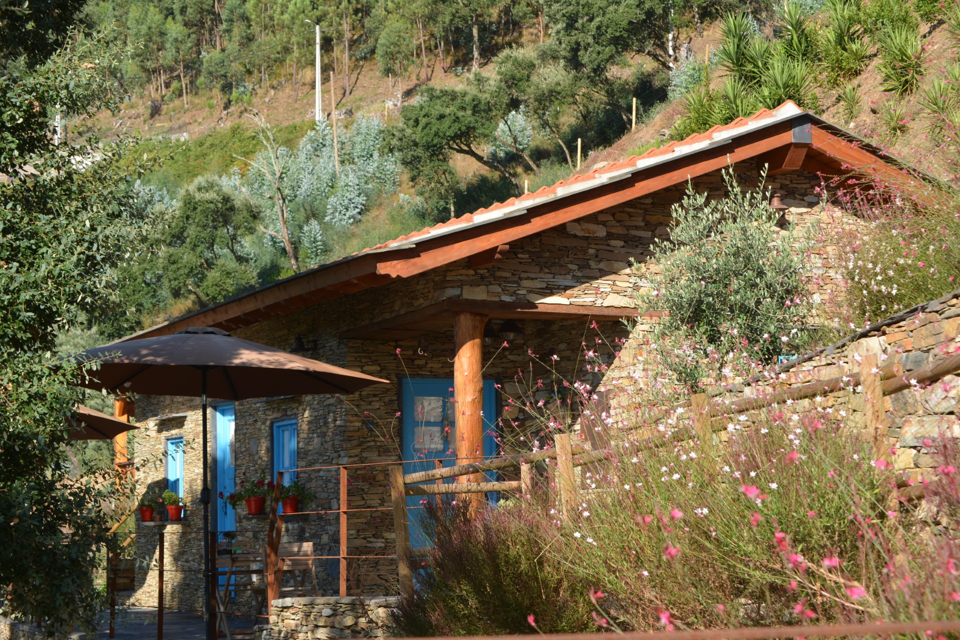 Não falta também um gato cinzento que gosta de visitar a vila e seduzir os hóspedes com o seu olhar e o seu ronronar. Este gato de presença discreta é também um convite ao ambiente familiar que envolve todo o alojamento, até porque há uma terceira casa, a dos proprietários Carla e Abel, que completa o quadro. Quadro em que cada traço foi sonhado e pensado ao pormenor e com extremo bom gosto. Ambos queriam refletir nas suas escolhas para o alojamento o amor que têm pelo lugar e pelo rio. Na esperança de contagiarem os hóspedes. E tornaram os sonhos realidade. Esse contágio acontece de forma natural.